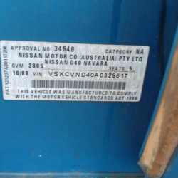 For sale a 2008 Nissan Navara Trans/Gearbox, currently wrecking a Nissan for parts please call us for a quote or price on any parts for this vehicle.