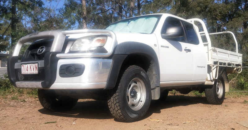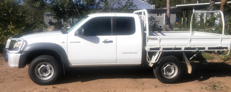 This 2007 tidy work ute is located in SE Queensland, Australia (Lockyer Valley), it has had 2 female owners and vehicle mileage is currently 237555klm (mostly highway driving) and ute has been regularly serviced and greased. Ute has never been on the beach but it has been used for some 4WD (more than happy to put her in 4WD for test drive but we won't be going up and down mountains). Rear suspension has been upgraded to medium duty so she can handle carrying loads comfortably (factory rated at 3000kg). Ute has been garaged when not in use so the paintwork is good. As per the photographs supplied - the ute has a steel tray but NO bling - it's a tidy work ute - it does NOT have style sides. Ute has ladder racks and still no bling - it's a work ute and the interior is as for a basic work ute (no bling but it's clean, the seat covers and floor coverings are not torn/worn badly or stained etc), it has a cd player and radio (standard mazda issue - if you want subwoofers and bluetooth and shiny screens and speakers that will pump out enough noise to annoy the neighbours etc you'll need to add those yourself). Everything on the ute works. Recently serviced (oil change, fuel and oil filters replaced, new timing belt, water pump etc as per standard 120000klm service requirements). The tyres are 235/75R15 - no bling no 17 inch shiny rims with big fat mud tyres if you want those then you'll need to add them yourself - it's a work ute as per the photographs. I am negotiable on the price to a degree. I’m selling my ute because I’ve had to downgrade to an older automatic city car due to illness – my ute’s a tidy, honest vehicle- nothing more nothing less.
